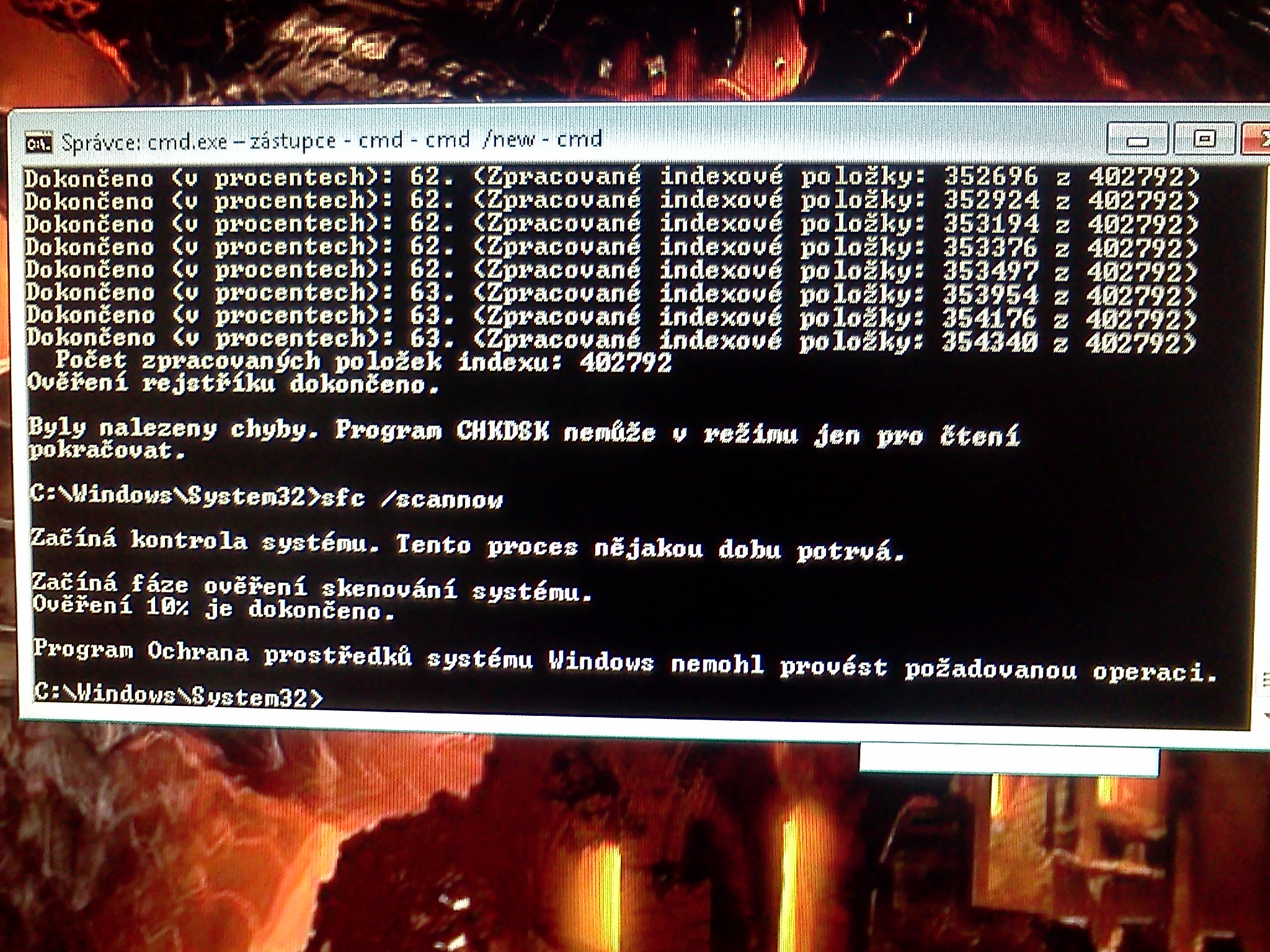 chybovou zprávu