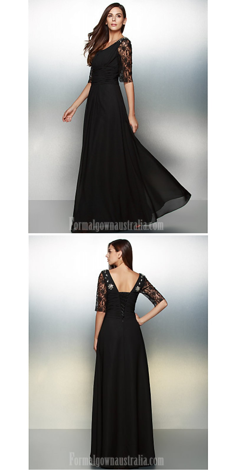 Australia Formal Evening Dress Black A-line Scoop Long Floor-length Chiffon Lace https://www.formalgownaustralia.com/two-piece-formal-dress.html